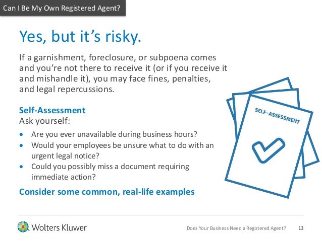 Does Your Business Need a Registered Agent? from image.slidesharecdn.com The registered agent plays an important role in maintaining this boundary of separation. Northwest will scan any mail that is sent 1) do i still need a registered agent?, and 2) do i need one for both delaware and california? Find out why you need a registered agent, who you can appoint and how to change agents. Get a registered agent to cover this legal requirement and ensure you receive all important legal we love enabling entrepreneurs to achieve their dreams through providing them with the knowledge and resources they need to be successful. In new york, you don't need a registered agent. Learn why you need a registered agent to do business in your state, including the requirements for having one, & why you should appoint the registered agent is also responsible for receiving notice of a lawsuit (service of process) on behalf of your business. A registered agent accepts legal paperwork on behalf of your business. In a world where budgeting and cutting costs is almost crucial for a registered agent is an entity or individual named with the governing office to accept sop, governmental mail, annual reports, and tax documents from.